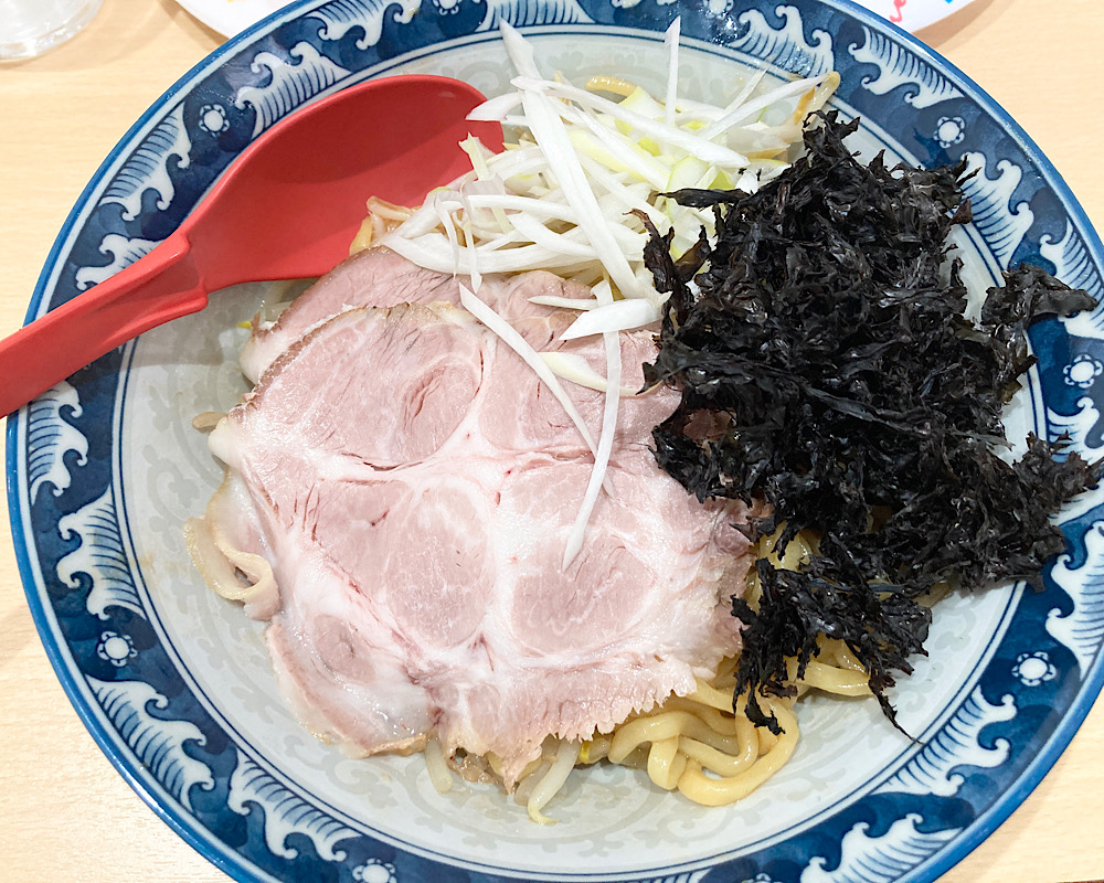 チャーシューは薄切りで大きめ。ドカンと主役並みの大きさですね。