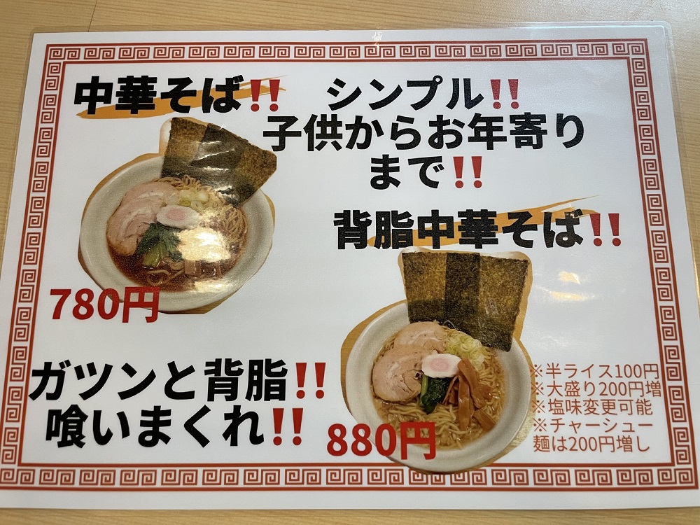 今回気になったのがお店の前にも貼られていたメニューのラーメンです。